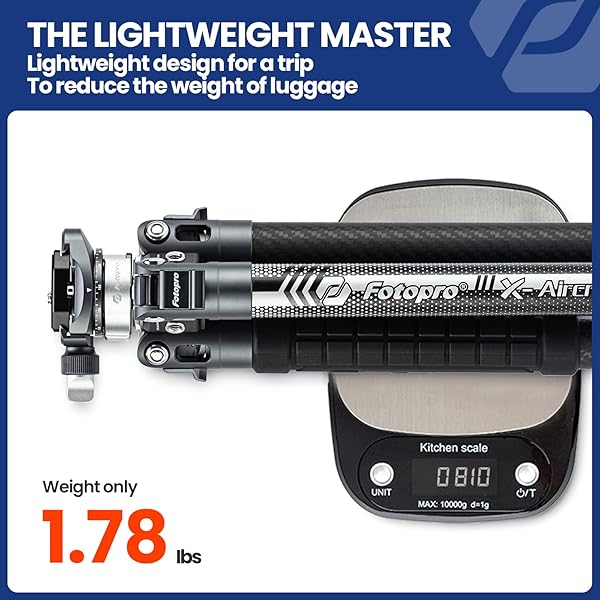 * Fotopro Carbon Fiber Tripod 1.7lbs Ultralight 62 Inch Portable Compact Travel Tripod for Camera DSLR Load up to 22lbs X-Aircross 3 Lite Grey: ultra lightweight and compact: fotopro x-aircross 3 lite professional travel carbon fiber camera tripod only weighs 1.78lbs(0.81kg) * But it can load up to 11.02lbs (5kg) * The single tripod section load capacity 22lbs(10kg) * And the folding height 15.74 inches can be easily put into your bag when travelling * INNOVATIVE LOCKING SYSTEM: Fotopro