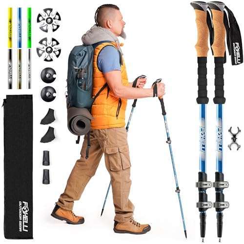 - Foxelli Trekking Poles Lightweight Collapsible Aircraft Grade Aluminum Hiking Poles with Cork Grips Quick Locks & All-Terrain Accessories Pair of 2: reliable performance and quality- One Size Fits All: Easily retractable trekking poles- Tired of Bulky Poles? Pack light! These collapsible- Supreme Comfort: Anti-slip cork grips mold to your- Strong & Reliable: Built with ultra-strong,