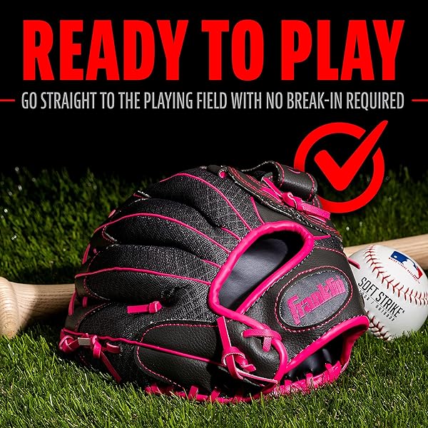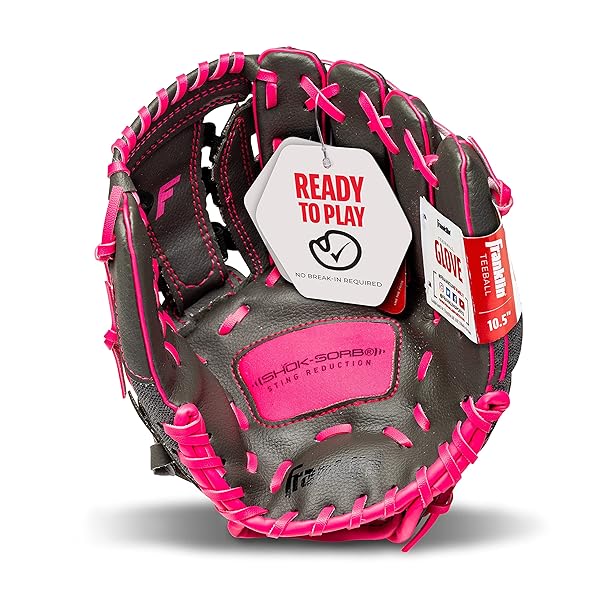 - Franklin Sports Shok Sorb Kids Baseball + Teeball Glove - Youth Baseball, Softball + Tball Glove for Boys + Girls - Right Hand Throw - Pink - 10.5" offers reliable performance and quality- SOFT AND LIGHTWEIGHT: The lightweight, soft mesh construction makes this glove easy to use for younger players- READY TO PLAY: The soft palm construction means there is no need to break in. This glove comes all-ready to play!