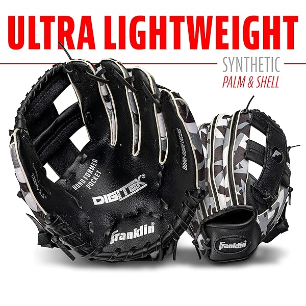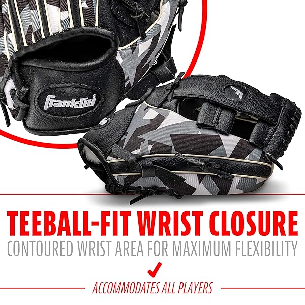 - Franklin Sports RTP Kids Baseball + Tball Glove - Youth Baseball Glove - Boys + Girls Teeball - Youth Mitt - Black/White - 9.5" Right Hand Throw offers reliable performance and quality- LIGHTWEIGHT: Constructed with lightweight PVC for maximum comfort and ensures easy fielding for young players- TEEBALL FIT: Contoured wrist closure design to maximize flexibility and maintain comfort