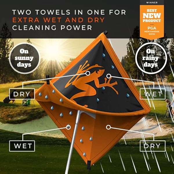 - Frogger Amphibian 2-in-1 Golf Towel with Wet and Dry Technology, Black/Grey, Premium Golf Bag Accessory with Carabiner Clip, Ultra Absorbent, for Golf Dads provides reliable performance and quality- Wet and Dry Technology: Our double sided golf towels feature an ultra-absorbent interior to wipe dirt from clubs and balls. Wet the inside layer to keep it moist throughout your round, while the ex...