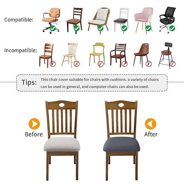 - Fuloon Stretch Chair Seat Covers 6 PCS, Removable Washable Dining Chair Covers Anti-Dust Dining Room Seat Cushion Slipcovers (6, Gray) offers reliable performance and quality- Protect Your Dining Chair: Highly elastic dining chair cushion protectors can easily upgrade your old cushions and protect your dining chairs from daily wear and tear such as stains, dust and pet hair