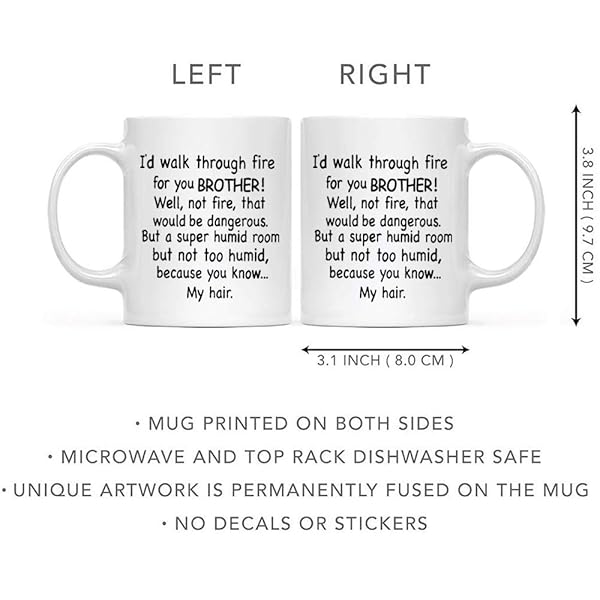- DQG CVT Funny Brother Gifts - 'I'd Walk Through Fire For You' Coffee Mug - Unique Family Mug - Perfect For Birthdays & Christmas offers reliable performance and quality- SIZE: Holds 11oz of your favorite tea, coffee or beverage- CREATIVE GIFT IDEA - Perfect Christmas or Birthday Gift for friends, family, colleagues, and for yourself.This Represents an Affordable Novelty They Will Appreciate for Years