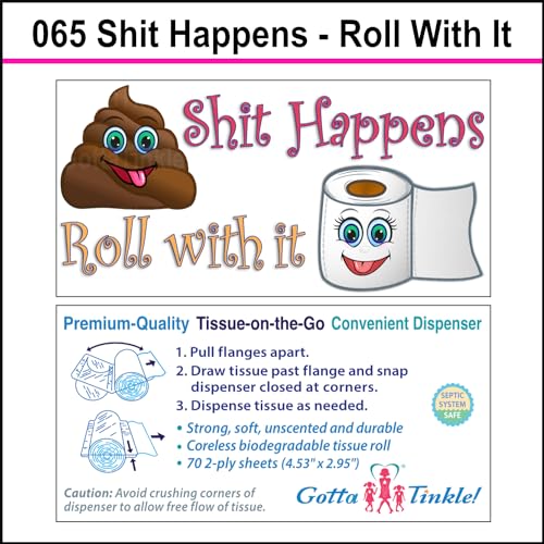 - Premium Travel-Size Mini Toilet Paper Rolls | Cute Party Favor | Convenient Plastic Dispenser | Funny Toilet Paper & Poop Emoji Humor (3-Pack) (065 Sh!t Happens - Roll With It) offers reliable performance and quality- Premium themed unscented two-ply coreless compact continuous travel-size toilet paper rolls containing septic safe, biodegradable perforated sheets- Convenient enclosed recyclable pull-out plastic dispenser case keeps tissue neat, clean and dry