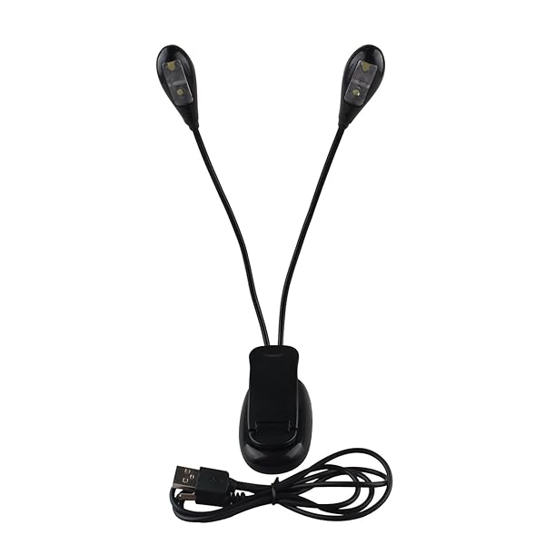 - Futheda Protable Dual Head Music Stand Light Book Light with 2 Flexible Gooseneck Arms 4 LED Clip on, Eye care, Flexible Clip Come with USB Cable, Best Suited for Music Stands, Grilling, Desk, Camping offers reliable performance and quality- Easy to use--Sturdy clip acts as a stable base, allowing the light to stand on its own, as well as attach to a book, shelf, cupboard, or computer