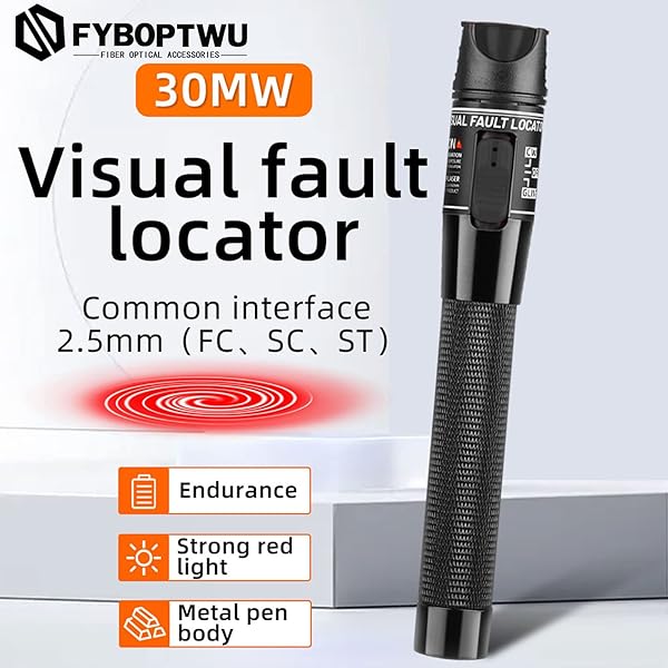- FYBOPTWU - 1pc Fiber Optic Visual Fault Locator VFL Fiber Optic Cable Tester with 1pcs Singlemode 9/125um FC Male to LC Female Adapter, Black Switch (Mode Number: VFL-30) offers reliable performance and quality- Fiber Optic Cable Tester The Fiber Optic Visual Fault Locator can detect fiber patch cord faults. [Note: Not include 2AA batteries]- AdvantageThe fiber optic tester is perfect for field tests