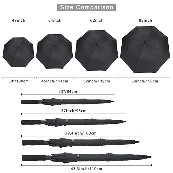 - G4Free 47 Inch Automatic Open Golf Umbrella with Reflective Stripe Extra Large Oversize Double Canopy Vented Windproof Waterproof Stick Umbrellas (Black) with reliable performance and quality- THE ULTIMATE GOLF UMBRELLA With a 47/54/62/68-inch canopy and heavy-duty design, the G4Free Ultimate Golf Umbrella is an ideal companion for golfers, and business professionals, or for daily life. With its sleek all-black design, comfortable EVA grip, sturdy frame, and auto open mechanism, t