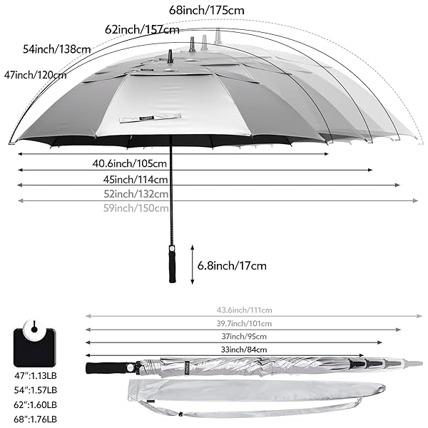 - G4Free 47 Inch UV Protection Golf Umbrella Auto Open Vented Double Canopy Oversize Extra Large Windproof Sun Rain Umbrellas (Silver/Black) with reliable performance and quality- UPF 50+ UV Protection Umbrella. 100% polyester canopy with a silver coating that reflects heat and cools you down. 50+ UPF rating to block 99% of the suns harmful UVA and UVB solar rays. Keep you cool in the sun and safe in the rain!- 47 Inch Extra Large Umbrella. 47"arc, 40.6"diameter, this G4Free