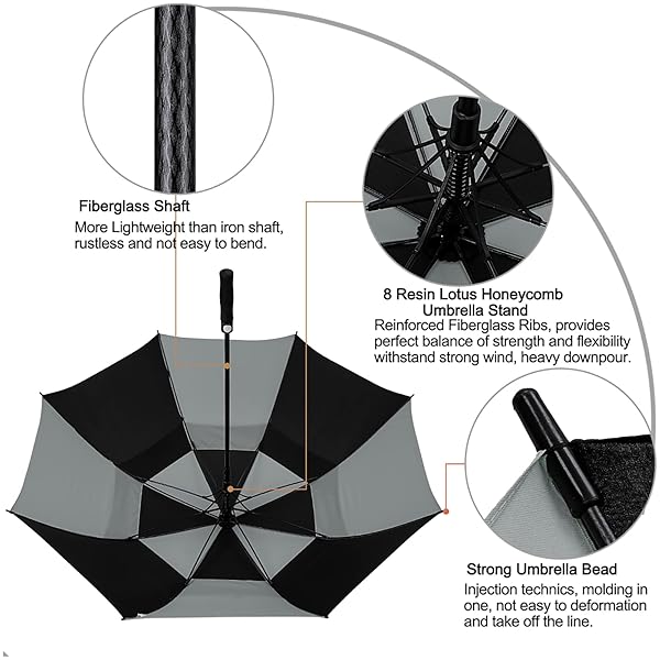 - G4Free 62 Inch Automatic Open Golf Umbrella Extra Large Oversize Double Canopy Vented Windproof Waterproof Stick Umbrellas(Black/Grey) offers reliable performance and quality