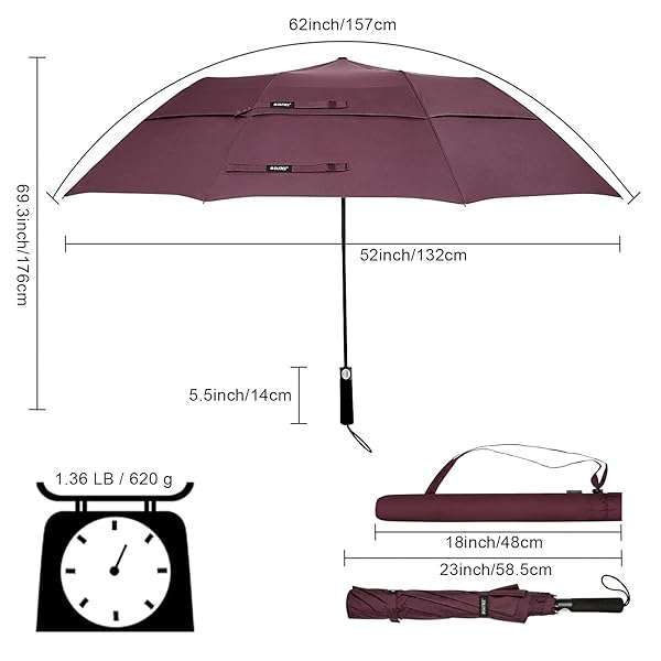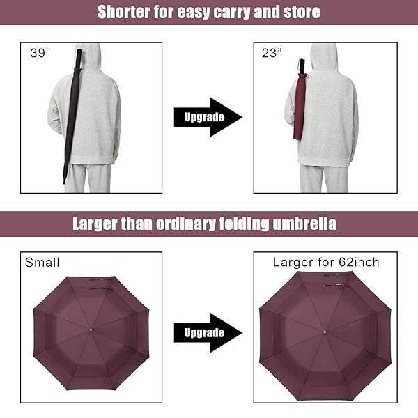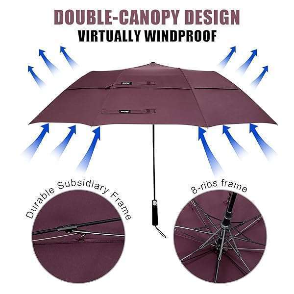 - G4Free 62 Inch Portable Golf Umbrella Large Oversize Double Canopy Vented Windproof Waterproof Automatic Open Stick Umbrellas for Men and Women(Wine Red): reliable performance and quality- Revolutionary Innovation: The G4Free 62-inch Folding- Double Canopy Strong Construction: Compared with other- Waterproof and Sunproof Fabric: The water-resistant- Auto-Open Umbrella: Open this compact umbrella at the