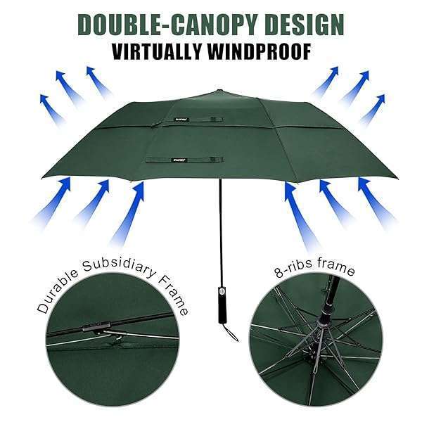 - G4Free 62 Inch Portable Golf Umbrella Large Oversize Double Canopy Vented Windproof Waterproof Automatic Open Stick Umbrellas for Men and Women(Dark Green) offers reliable performance and quality