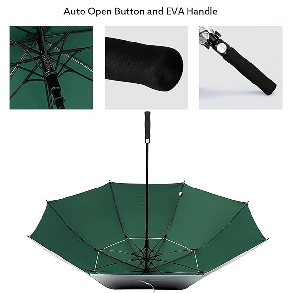 - G4Free 62 Inch UV Protection Golf Umbrella Auto Open Vented Double Canopy Oversize Extra Large Windproof Sun Rain UmbrellasSilver/Green offers reliable performance and quality- UPF 50+ UV Protection Umbrella. 100% polyester canopy with a silver coating that reflects heat and cools you down. 50+ UPF rating to block 99% of the suns harmful UVA and UVB solar rays. Keep you cool in the sun and safe in the rain!