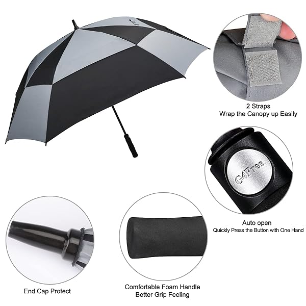 - G4Free Extra Large Golf Umbrella 68 inch Square Vented Windproof Auto Open Double Canopy Oversized Stick Umbrella offers reliable performance and quality- Square-shaped and Double Canopy Design. Our G4free golf umbrella features a chic square-shaped and color block design, it is a stylish umbrella for men and women. 100% polyester, 210T pongee double canopy design creates a vent for the wind to pass out, with no fear of strong storms and nasty winds