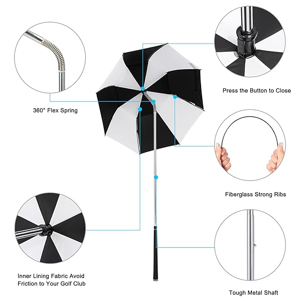 - G4Free Golf Bag Umbrella for Club Protection Flex Umbrella (Black/White) offers reliable performance and quality- 360 Direction Canopy. A convenient flex spring top in the shaft allows the canopy to pivot at any angle to easily access your golf club and quickly pull back for protection