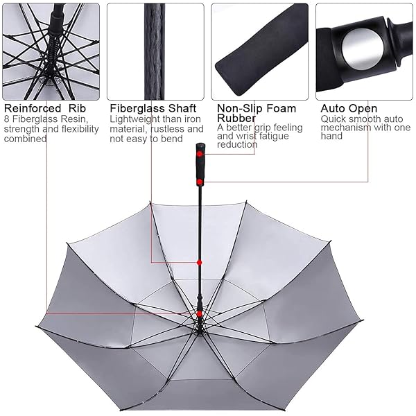 - G4Free Windproof Golf Umbrella UV Protection 54 inch Auto Open Double Canopy Vented Sun Rain Waterproof Stick Umbrellas (Sky Blue) offers reliable performance and quality- Practical Golf Umbrella: 54 62 68 inch arc, 45 52 59 inch in diameter respectively is big enough to provide protection for 1 to 4 people, the perfect companion for a family outdoors activities; umbrella stands 43.3inch and comes with a matching sleeve for convenient storage