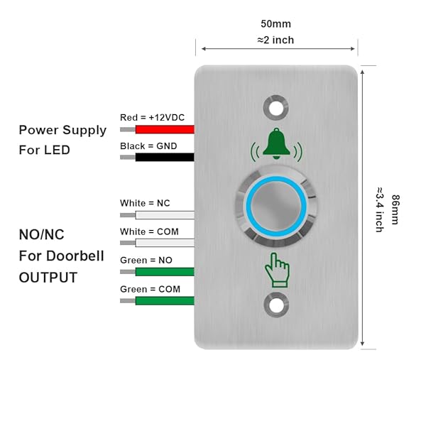 - GAGALOR Waterproof Doorbell Button Lighted Push Switch With LED NO&NC Stainless Steel 86 * 50mm offers reliable performance and quality- Waterproof with IP67 protection grade- NO&NC Output with separete color wires for choosing- High light LED ring by 12V power for choosing. ( optional for wiring )- 86*50mm standard diamensions