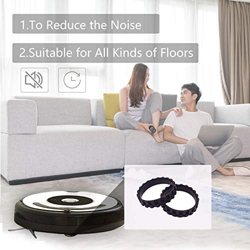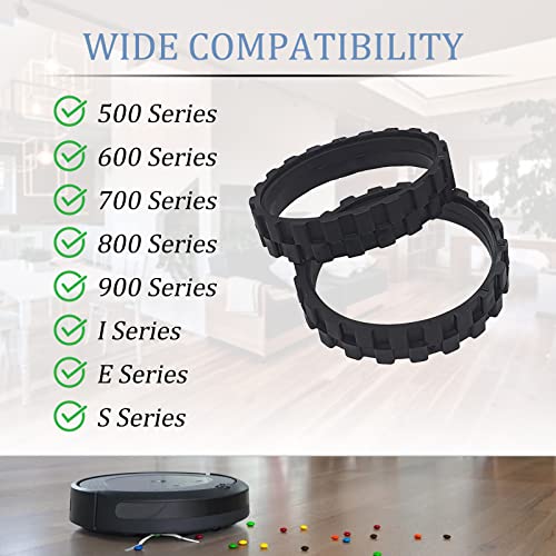* Garbage fighter Tires for Series 500, 600, 700, 800 and 900, e5, e6, i7,Anti-Slip, Great Adhesion and Easy Assembly, Wheel Replacement for All roomba Models (Black 2 Pack): super compatibility * Perfectly compatiable with Roomba 500 * 800 and 900 * I7 full range of models * PREMIUM MATERIAL