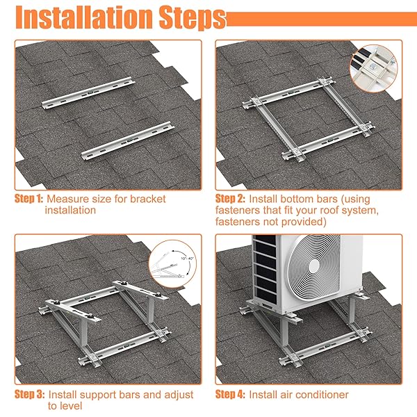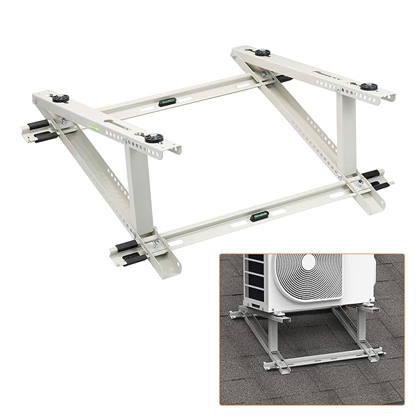 - GCGOODS Air Conditioner Rooftop Mount Bracket for Ductless Mini Split Heat Pump Air Conditioner Unit, Adjustable Angle Design for Stability and Level, Universal for Condenser Units 9000-24000 BTU offers reliable performance and quality- Heavy Duty Construction: The rooftop mounting bracket is made of heavy duty galvanized steel with power coating surface treatment, rust-proof and weather-proof, support up to 300lbs