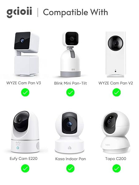 - Gcioii Wall Mount and Weatherproof Protective Cover for WYZE Cam Pan V3/V2/V1, Blink Mini Pan-Tilt, Eufy Cam E220, Kasa Indoor Pan and Tapo C200 (1 Pack WhiteCamera not Included) offers reliable performance and quality- Exclusive Design Specifically designed for WYZE Cam Pan V3/V2/V1, Blink Mini Pan-Tilt, Eufy Cam E220 , Kasa Indoor Pan and Tapo C200.Realize outdoor 360 monitoring perspective