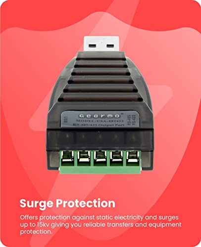 - Gearmo USB to Serial RS485/422 Converter with LED Indicators, FTDI Chipset, Terminal Connectors, ESD Protection, Wide OS Support offers reliable performance and quality- [ USB TO SERIAL RS-485/422 ADAPTER ] : Compact design with a unique I/O circuit with an internal zero delay. The transceiver controls the data stream automatically without handshaking RTS, DTR, etc. signals