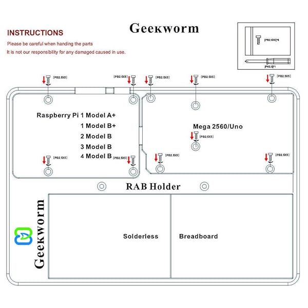 - Geekworm for Raspberry Pi 5/4B/3B+/3B RAB Holder Platform Breadboard Holder Base/ABS Case/Education Platform Compatible with Arduino Uno R4/R3/UNO Mega 2560 & 400/830 Points Breadboard offers reliable performance and quality- Compatibility: Compatible with Raspberry Pi 5/4B/3B+/3B/2B/B+, Arduino Uno, Mega2560, also support both 400 points breadboard and 830 points breadboard