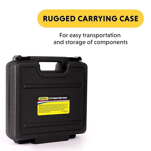 - General Tools UV512C Digital Ultraviolet UVC Light Meter, 220 to 270 nM provides reliable performance and quality- SPECTRAL RANGE- 220 to 275 nM- MEASURING RANGE- 1 to 1999 uW/cm2 and 0. 01 to 40 mW/cm2- DISPLAY- Backlit dual-readout 4-digit LCD- MEMORY- 20-measurement memory