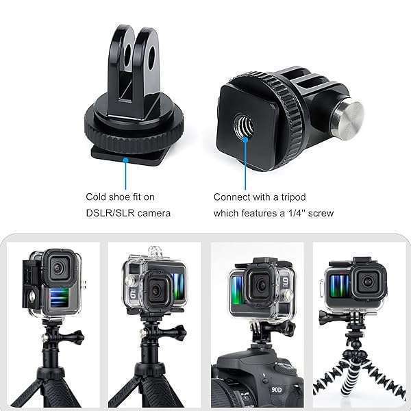- GEPULY 4 Pack Cold Shoe Mount Adapters,1/4" Thread Hole Cold Shoe Bracket,for GoPro Hero 13 12 11 10 9 8 7 6 5 4, Action Cameras DSLR Camera Cage Microphone LED Light Selfie Stick Monopod offers reliable performance and quality- Universal accessories, compatible with GoPro Hero 13,12,11, 10, 9, 8, 7, 6, 5, 4, 3+, 3, 2, 1, Session, Fusion, Insta360, AKASO, DJI OSMO action camera, digital camera, DSLR camera, and most action cameras, tripod, monopod