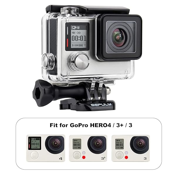 - GEPULY Waterproof Housing Case for GoPro Hero 4 Black, Hero 4 Silver, Hero 3+, Hero 3 Underwater Photography - Waterproof Up to 131 ft (40M) - with Quick Release Mount, Thumb Screw offers reliable performance and quality- Compatibility: This standard waterproof housing case compatible with GoPro Hero 3, Hero 3+, Hero 4 Black and Silver action cameras perfectly. Compact, lightweight and super suitable