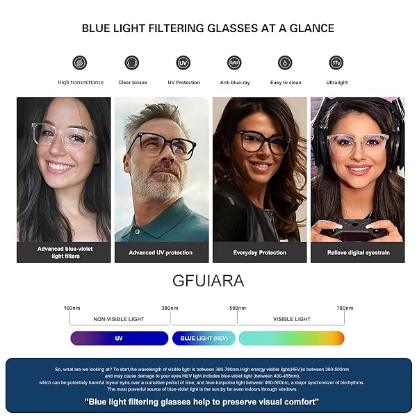 - GFUIARA Blue Light Blocking Glasses for Women Men,Fashion Square Blue Blockers Glasses,Computer/TV/Phones/Gaming Glasses offers reliable performance and quality- Protect your eyes - GFUIARA blue light blocking glasses are designed to protect your eyes from the harmful effects of prolonged screen exposure. Say goodbye to eye strain, fatigue, and headaches caused by digital devices and fluorescent lighting