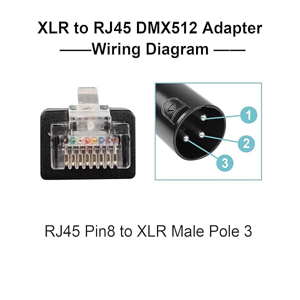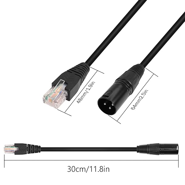 - GINTOOYUN 3 Pin XLR to RJ45 Adapter - DMX XLR Male to RJ45 Male Connector Extension Cable (30CM/11.8in) for Amplifiers, Mixers, KTV Equipment, Lighting and Sound with reliable performance and quality- Allows you to convert a XLR 3-pin connector into a network RJ45 connector for extending and transferring signal transmission. For your LED light signal controller.- With the RJ45 male connector, any CAT-5 Ethernet cable can be used as a DMX512 cable for the LED RGB band of the