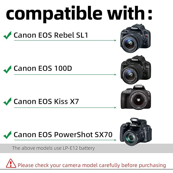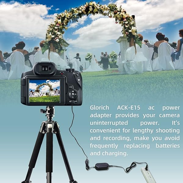 - Glorich ACK-E15 Replacement AC Power Adapter/Charger kit for Canon EOS Rebel SL1 / 100D DSLR Cameras offers reliable performance and quality- Worldwide Input voltage: AC 100~240V 1.5A, 50~60Hz- Output: DC 7.4V/2A 14.8W- Made of high quality plastic, copper wire and metal materials, compact design, 1-Year Warranty, CE and China CCC certified- DR-E15 DC Coupler (Connector) and Power Cord Included