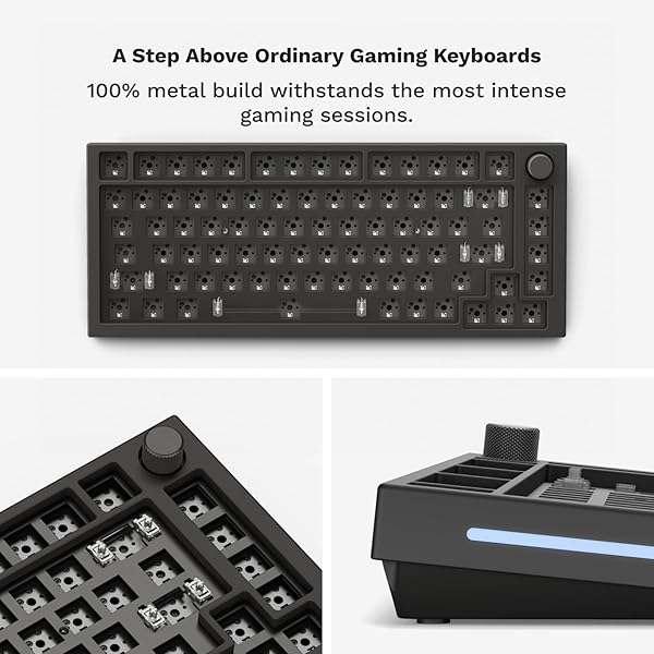 * Glorious Gaming GMMK PRO 75% Barebones Black (Frame Only) - Modular Mechanical Gaming Keyboard, TKL Size (75%), 3.3lb Frame, RGB, Fully Customisable, 5-Pin Switch Support: premium design & materials: the gmmk pro's body is cnc machined from solid aluminum * Giving it substantial weight and unrivaled durability compared to plastic alternatives * Anodization gives the body's surface high scratch resistance and a satin-like feel * Beneath the board's keys is an aluminum plate that creates a solid