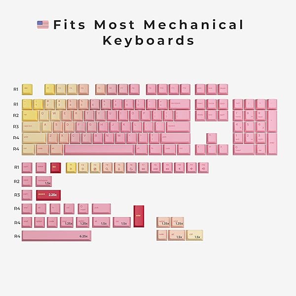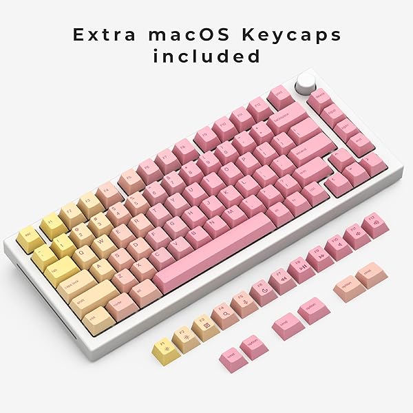 * Glorious Grapefruit PBT Keycaps Set (Pink & Yellow) 143 Cute Custom Keycaps, Cherry MX Profile, Pastel, Low-Profile Dye-Sub for Mechanical Gaming Keyboards (60%, TKL, Full Size) Incl Mac Keys (191): custom design * These cute keycaps feature a striking pastel gradient * Which starts with a vibrant yellow and soft pink * Perfect for adding a punch of color to your gaming setup or to any ergonomic keyboard * Their clean