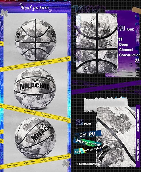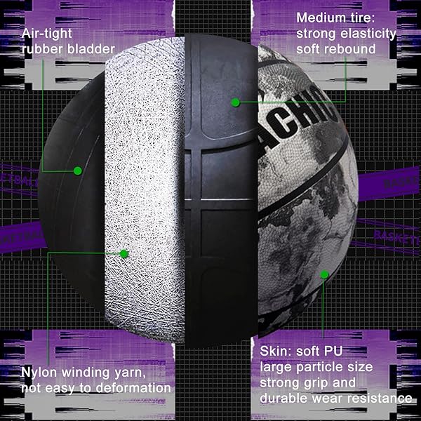 * MILACHIC Glow in The Dark Basketball - Indoor/Outdoor Holographic Glowing Leather Official Size 7/29.5" - Basketball Gifts for Boys, Girls, Men, Women: better glowing effect no batteries needed * New fluorescent material is used in this Milachic glow in the dark basketball * Makes the basketball more durable and achieve better glowing effect * After irradiated by sunlight or other strong light * The basketball can glow naturally without batteries in dark