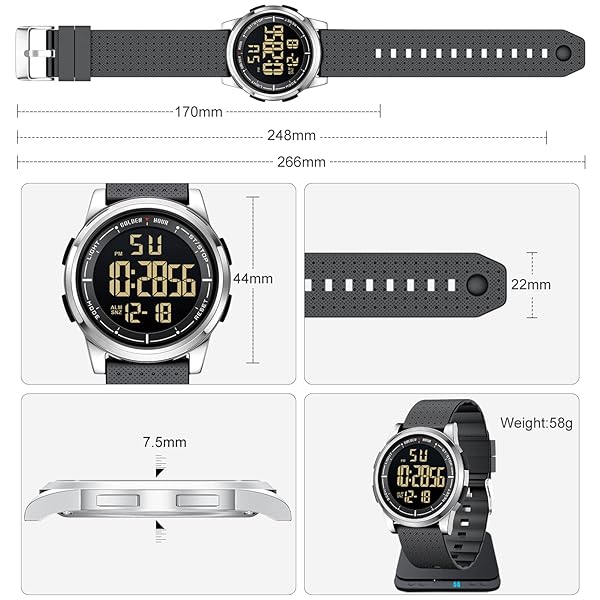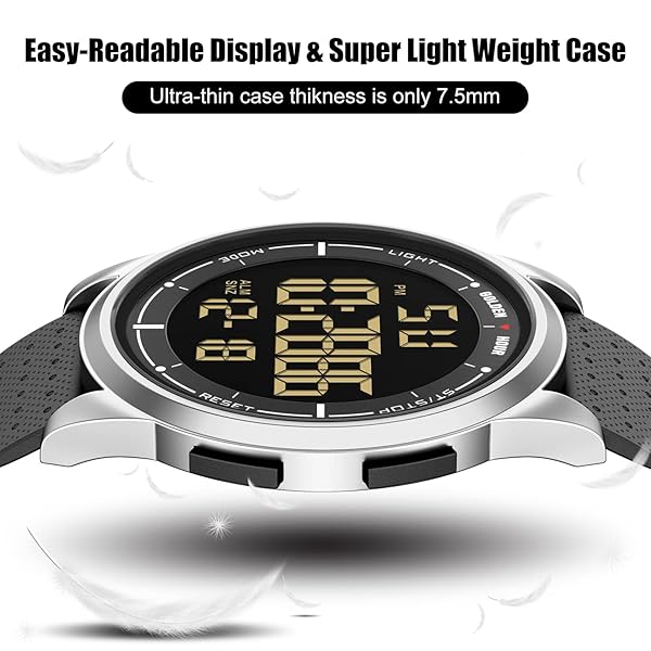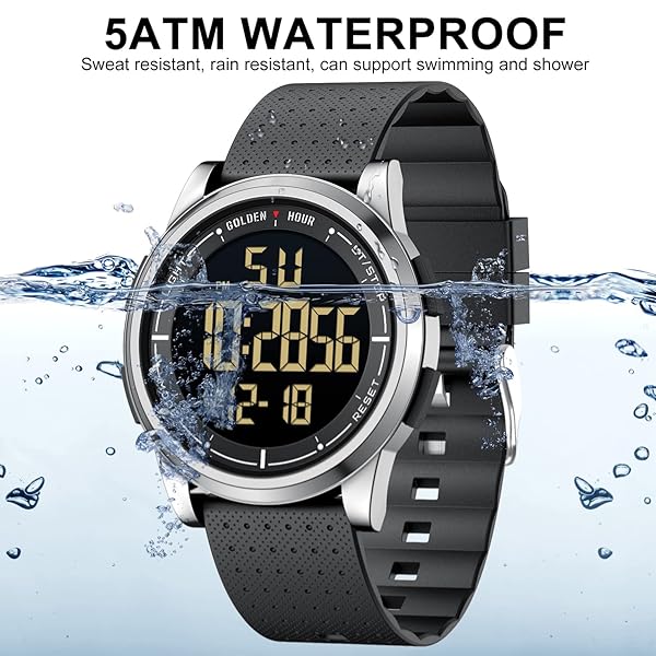 - GOLDEN HOUR Ultra-Thin Minimalist Sports Waterproof Digital Watches Men with Wide-Angle Display Rubber Strap Alloy Steel Case Wrist Watch for Men Women in Silver offers reliable performance and quality- [DIGITAL MULTIFUNCTION WATCHES]: Imported EL backlight screen, the time can be clearly displayed in the backlight. The digital watch also has 12/24H, stopwatch, alarm, Date and Day