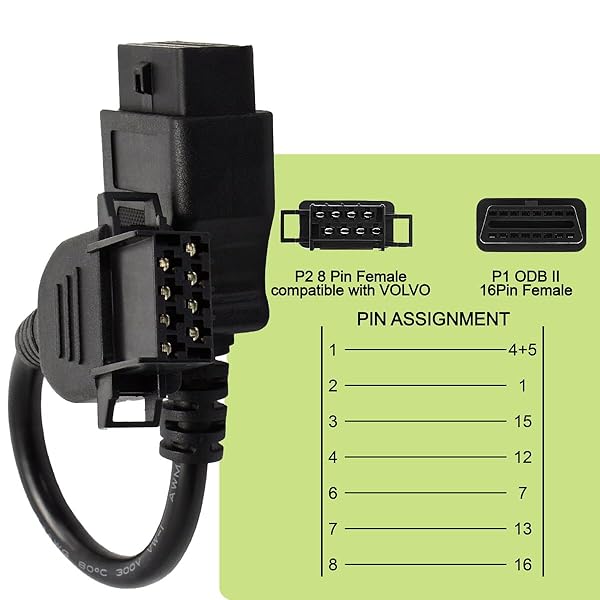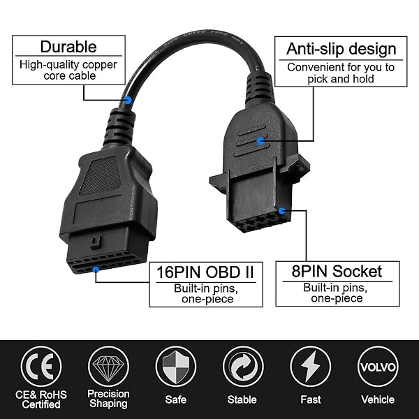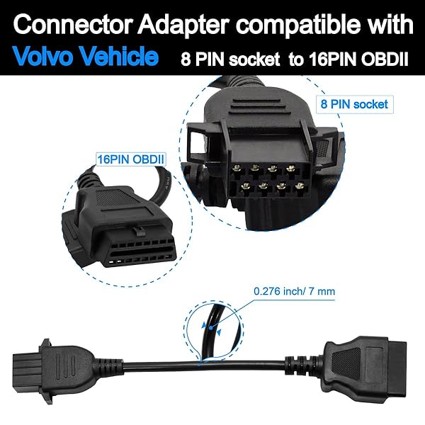 - GOLITON OBD2 8 Pin Cable Truck Heavy Duty Diagosis Cables Compatible with Volvo with reliable performance and quality- : OBD1 to OBD2 adapter Cable has high practicality, which is used specifically for connecting your scanner and your vehicle, specifically for Volvo 8 Pin socket with TCS Diagnostic tools. Please note that this item is just a cable, not a scanner or diagnostic tool.- : The Scanner Adapter Cable is easy to use, its 8 Pin allows you to connect a vehicle with a