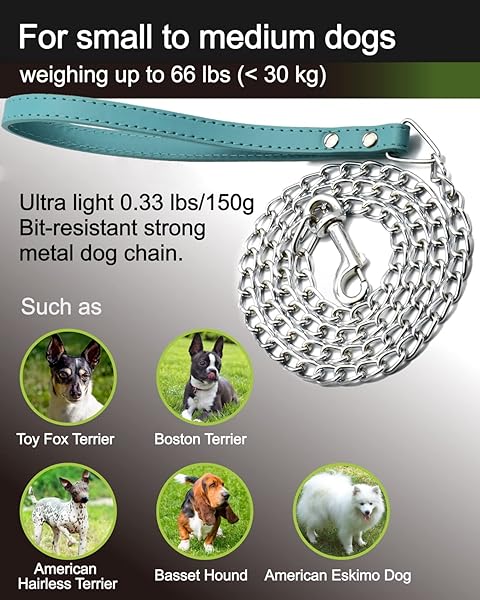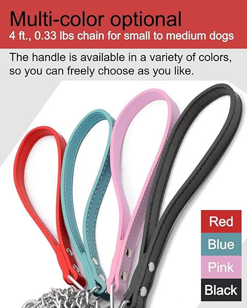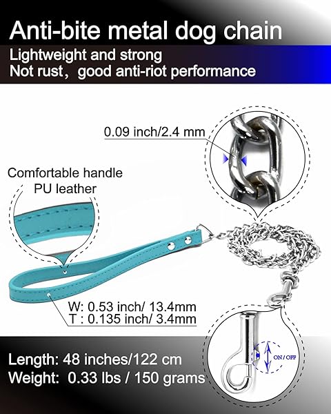 - Goliton Dog Leash, Metal Pet Leash with Comfortable PU Leather Handle for Small and Medium Size Dogs 4 FT (Blue) offers reliable performance and quality- High-quality small and medium-sized anti-bite metal dog chain is made of argon welding and chrome plating, which has maximum strength and good durability, and is easy to use without knots, will resistant to rust and tarnishe. Suitable for small to medium-sized dogs under 66 pounds (less than 30kg) for use in all seasons