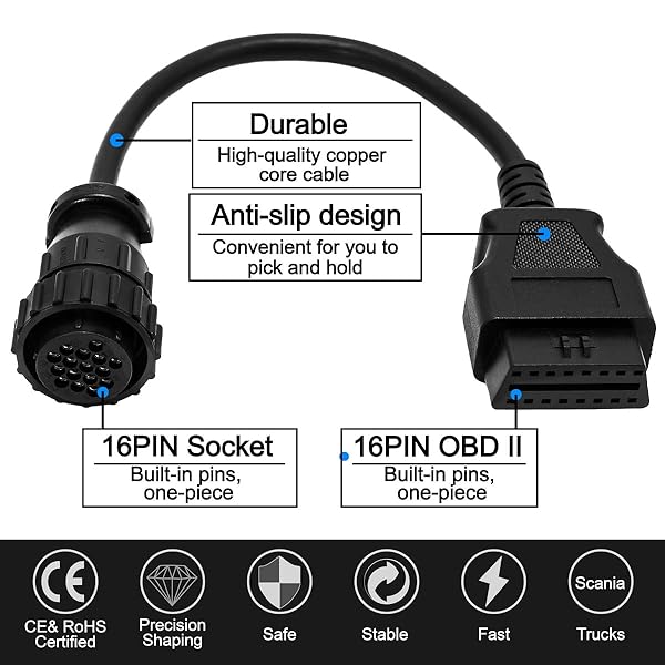 - Goliton 16pin to OBD2 16pin Compatible TCS Diagnostic Tools for Scania Trucks OBD2 Connector Cable for Scania Trucks with reliable performance and quality- : OBD1 to OBD2 adapter Cable has high practicality, which is used specifically for connecting your scanner and your vehicle, specifically for Scania Trucks 16 Pin socket with TCS Diagnostic tools. Please note that this item is just a cable, not a scanner or diagnostic tool.- : The Scanner Adapter Cable is easy to use, it