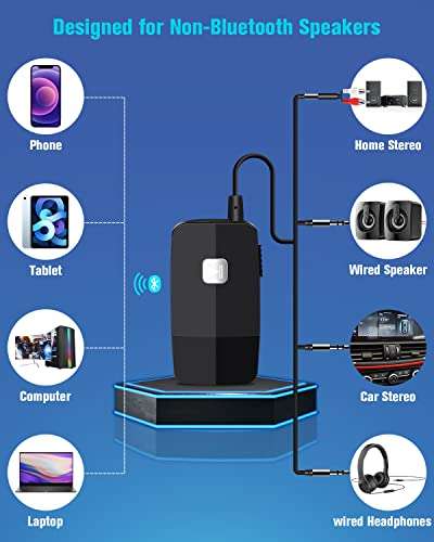 - Golvery Upgraded Bluetooth 5.4 Receiver for Speaker, Wireless Audio Adapter for Home Audio Car Stereo with 3.5mm RCA Jack, 20 Hours Playtime, Dual Connection to 2 Phones, Easy Control ON/Off Slider...- The Latest Bluetooth V5.4 With upgraded Bluetooth V5.4 technology and the advanced chipset, combining A2DP profile, this bluetooth rca adapter comes with stable connectivity and remarkable signal s...