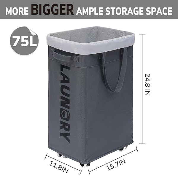 - Goodpick Laundry Basket with Wheels, 75L Laundry Hamper with Removable Wash Bag, Dorm Room Essentials, Rolling Laundry Basket with Wheels, Grey offers reliable performance and quality- Lightweight. Made of 600D oxford fabric with coating inside for mositureproof. A sturdy metal frame on the top to keep the basket upright even when empty. Our laundry hamper is lightweight, making it easy to move around