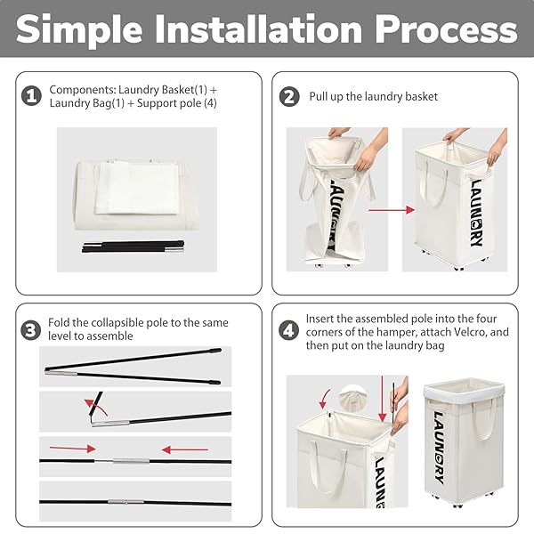 Goodpick Laundry Hamper with Wheels, 75L Hamper with Wheels, Clothes Hamper with Removable Wash Bag for Bedroom, Large Laundry Basket with Handle, White