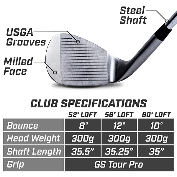 GoSports Tour Pro Golf Wedge Set - Includes 52 Degree Gap Wedge, 56 Degree Sand Wedge and 60 Lob Wedge Degree in Satin or Black Finish (Right Handed)