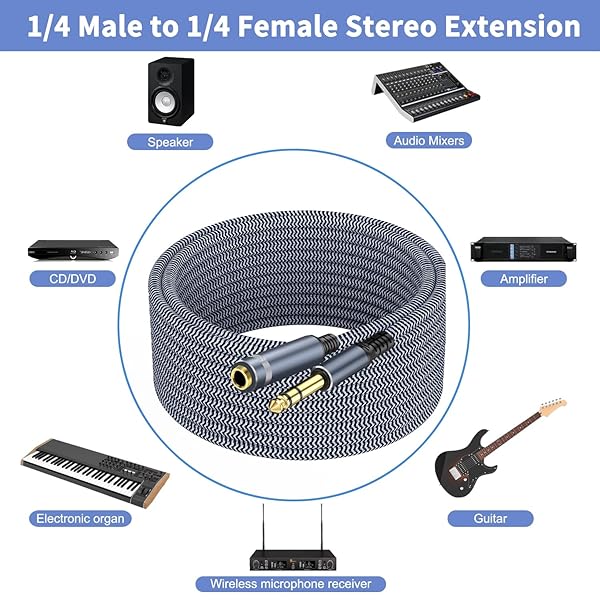 - GOSYSONG 1/4 inch Extension Cable 50ft, 1/4" inch Male to Female Stereo Extension Cable with reliable performance and quality- 1/4" Stereo Cable has one 1/4 inch(6.35mm) TRS Stereo Female Plug and 1/4 inch Male Stereo Jack, used as a 1/4 stereo extension output, and it's Bidirectional.- 1/4 Inch Stereo Male to 1/4 Inch Female TRS Extension Cable.Headphones with standard 6.35 mm plugs to 1/4 trs female jack audio device.- GOSYSONG 1/4" stereo audio adapter uses high q