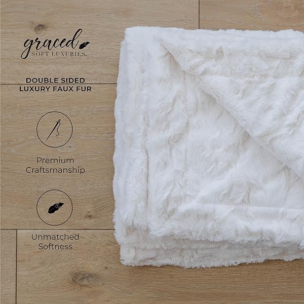 "GRACED SOFT LUXURIES Ivory Faux Fur Throw Blanket - Cozy, Elegant & Perfect for Home, Travel & Living Room (50" x 60")"