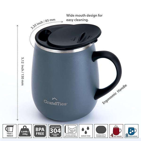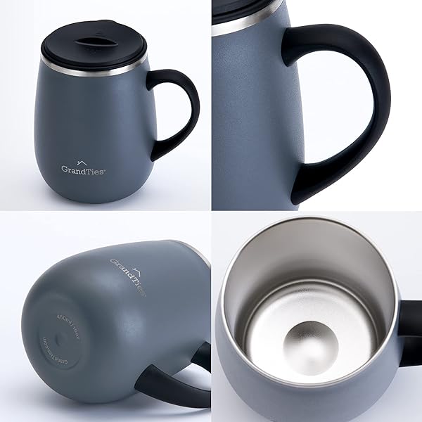 - GRANDTIES Insulated Coffee Mug with Handle - Sliding Lid for Splash-Proof 16oz Wine-Glass Shape Thermal Tumbler with Double Walled Vacuum Stainless Steel to Keeps Beverages Hot or Cold-Stone Grey: reliable performance and quality- SPECIAL LID DESIGN The unique slider lid easily opens- DOUBLE WALLED VACUUM CUPS - For maximum temperature- DURABLE PREMIUM QUALITY - The 16oz reusable coffee- WONDERFUL GIFT IDEA - This lightweight, simple, modern