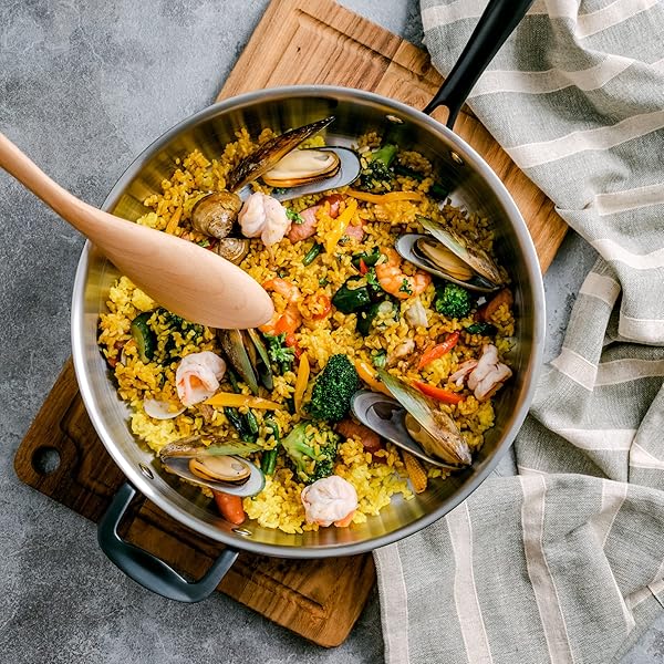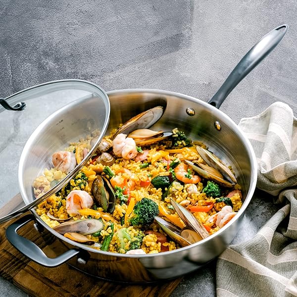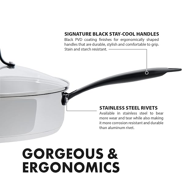 - GrandTies Tri-Ply Stainless Steel Saute pan Induction Cookware 5 QT 12 Inch Capsule Bottom Stainless Steel Pan, Marquina Black Metal Handle Kitchen Cooking Pan with Lid, Dishwasher Safe Pot: reliable performance and quality- LONG LASTING DURABILITY: This triple layer (Tri ply) 5- DESIGNED FOR EFFORTLESS COOKING: Versatile stainless- STAY COOL HANDLE & VENTED LID: Signature black stay- GORGEOUS TIMELESS DESIGN: The unique black PVD coating