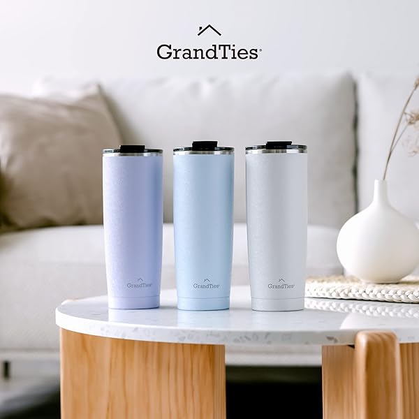 * GRANDTIES Insulated Coffee Tumbler Cup w/Tritan Lid | Leak Proof, Reusable, Double Walled Vacuum Stainless Steel Travel Mug | 20oz (Snowy: Pearl): why most insulated travel tumblers are so boring? why not getting the stylish * Sleek and minimalist designed coffee tumbler with semi-transparent TRITAN lid to add stylish for your desk * Kitchen * Living room * Or any workplace?