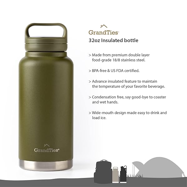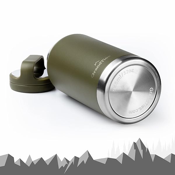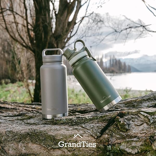 - GRANDTIES 2 Lids Sports Stainless Steel Water Bottles Wide Mouth Vacuum Insulated Reusable Leak Proof BPA-Free Travel Metal Canteen, Thermal Bottles for Men Women Gym (Olive Green 32 oz): reliable performance and quality- PREMIUM QUALITY: GrandTies specialized water bottle is- BEST INSULATED WATER BOTTLE FOR WORKOUT AND OUTDOOR- ERGONOMIC COMPATIBLE DESIGN: wide mouth 24 oz, 32 oz- ENVIRONMENTALLY- FRIENDLY: Our BPA free water bottle