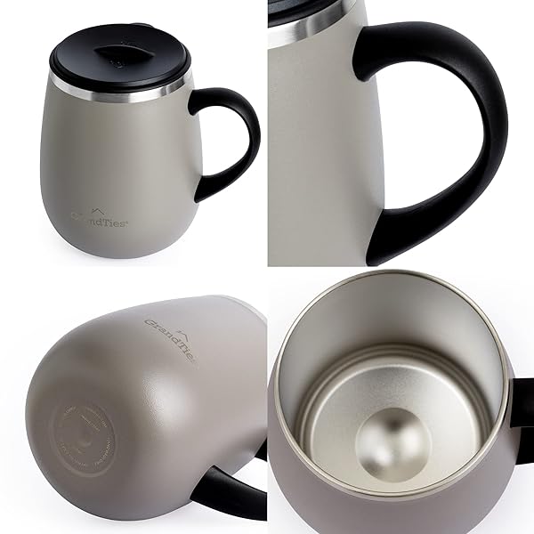 * GRANDTIES Insulated Coffee Mug with Handle - Sliding Lid for Splash-Proof 16oz Wine-Glass Shape Thermal Tumbler with Double Walled Vacuum Stainless Steel to Keeps Beverages Hot or Cold-Caffe Latte: special lid design the unique slider lid easily opens or closes with one finger * This silicone O-Ring spill-proof sliding lids seals off completely * Making it spill proof for easy transportation and helps maintain the temperature in the travel coffee mug * The lid of the mugs is a DISHWASHER SAFE
