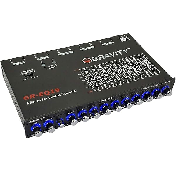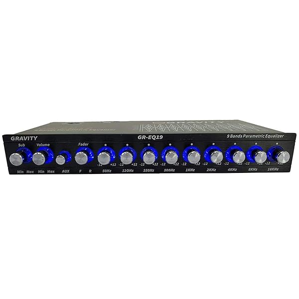 - Gravity EQ19 1/2 Din 9 Equalization Bands Band Car Audio Equalizer EQ Front, Rear + Sub Output 9V with Three Stereo RCA Output/Built-in Input AUX/DVD Select Switch offers reliable performance and quality- 9 equalization bands (50Hz, 120Hz, 250Hz, 500Hz, 1kHz, 2kHz, 4kHz, 8kHz, 16kHz)- Active gain Pre-amp with adjustable input sensitivity- Master volume control with up to 9 volts RMS of output- Master volume control with up to 9 volts RMS of output
